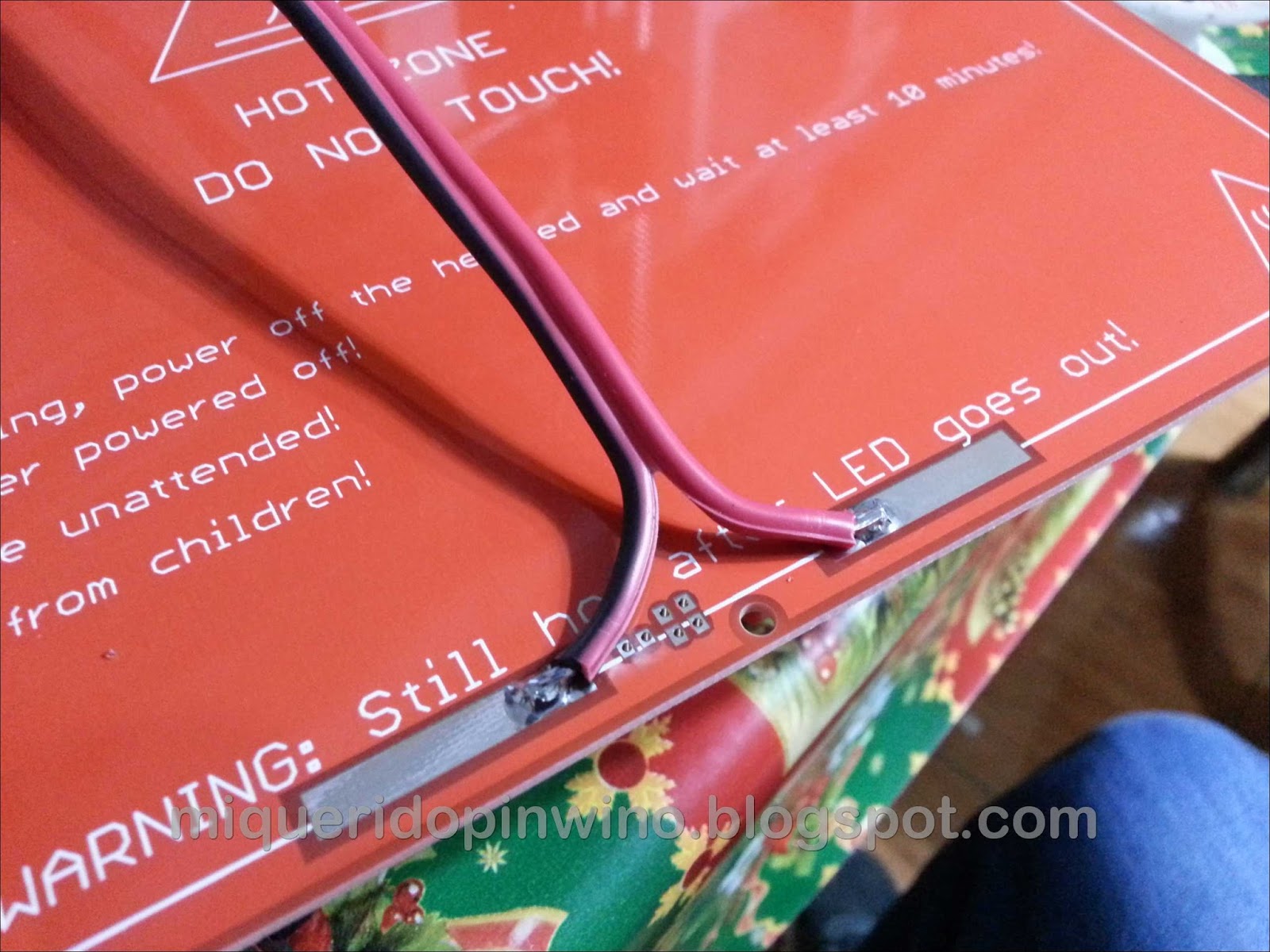 Seguidamente los he soldado, con el termistor metido en el hueco pero sin sobresalir demasiado (en este punto es conveniente poner por el otro un trocito de cinta Kapton y silicona transparente para fijar el termistor),
